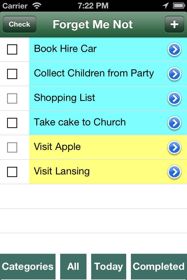 ForgetMeNot is designed to be the BEST reminder and checklist app available.  Some others might be fun to use, but they are light on features.  This app has everything you need, and it helps you keep track of all your reminders and checklists, providing time based or location based alerts.